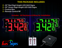 Gas Price Sign 20 inch - 4 Red & 2 Green Digital Gasoline Signs - Complete Package w/ RF Remote Control
